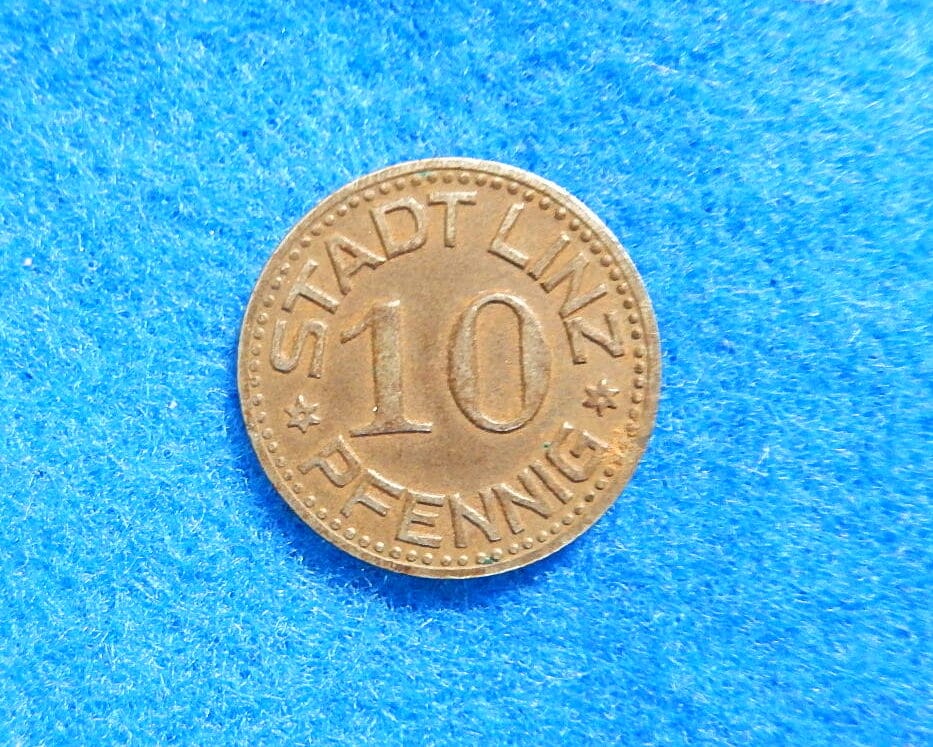 1917 GERMANY – STADT LINZ (CITY OF LINZ) – original 10 Pfennig NOTGELD/KRIEGSGELD COIN from WW1 era. Made of 21 mm diameter iron. Shipped in coin flip holder from Lexington, KY. You will receive the exact coin pictured. We ship in one business day. JBvalu Stock no. NGC-2. Flat shipping charge to USA includes tracking.