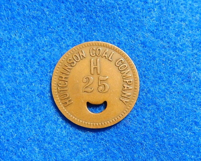 A rare vintage 25 cents coal scrip token from Hutchinson Coal Co., Lumberport West Virginia, Harrison County. Edkins WV1695D25a. Made of 24mm diameter brass. Own a piece of history – coal scrip was used in place of money at a coal mine’s company store. You will receive the actual token pictured shipped in a vinyl coin flip. JBvalu Stock no. CS-151. Very nice condition. Flat shipping charge to USA regardless of quantity or additional items includes tracking.