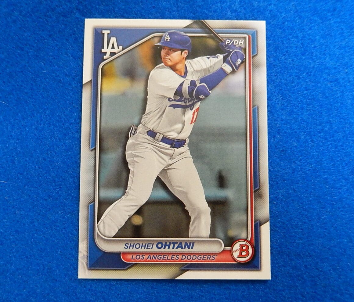 Shohei Ohtani 2024 Bowman Baseball Card No. 51. First year with Los Angeles Dodgers. JBvalu Stock no. SO88. Near Mint. A great Ohtani collectible. Ships in soft plastic sleeve inside a hard plastic top loader. Flat shipping charge to USA regardless of quantity or additional items includes tracking.