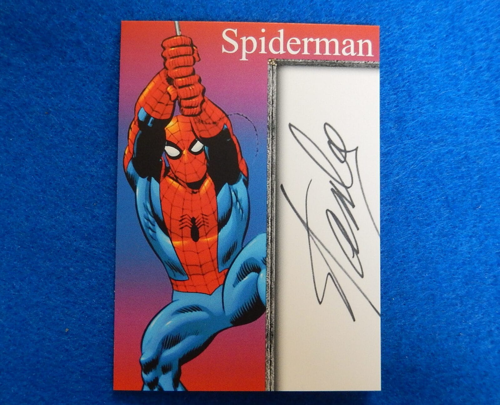 SPIDERMAN Trading Card with Spiderman Creator Stan Lee Facsimile Autograph from Inkredible Ink. Standard trading card size. JBvalu Stock No. SPD1. Ships in soft plastic sleeve inside a hard plastic top loader. We ship within one business day. Flat shipping charge to USA regardless of quantity or additional items includes tracking.